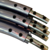 Fabricada en aluminio aeronáutico aleación 6061 templado 6. Uniones de acero de carbono cilindradas con galvanizado al caliente. Con 4 tornillos fresados por unión. Disponible en 5 o 7 partes. Cubierta de goma cristal transparente de 3 o 5 mm. Peso aproximado: 14 kg (rueda de 180 cm en 5 partes). Personalizable en tamaño de circunferencia, grip y colores. Incluye llave Allen, tornillos de repuesto y bolso de transporte.