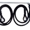 Barra trafilada con ojales en los extremos de 1 o ¾ pulgada de diámetro. Ancho libre: 60 cm. Cuerdas color natural de algodón trenzado. Largo: 2,6 mts. Peso aproximado: 3,5 kg. Tratamiento galvanizado y opción de tramos fuera de los ojales.
