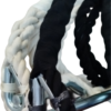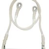Barra trafilada de 1 pulgada y 25,4 mm de diámetro, color negro. Guarda-cabos soldados con soldadura MIG. Cuerda de algodón trenzada de 3 hebras, 22 mm de diámetro, color blanco. Carga de rotura: 1800 kg por hebra. Largo total: 2,6 mts. Peso aproximado de la barra: 3,5 kg. Peso total: 5,5 kg. Incluye cinta de tela blanca para forrar la barra.
